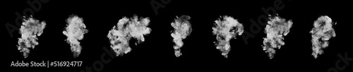 Smoke set isolated on black background. Transparent smoke effect.