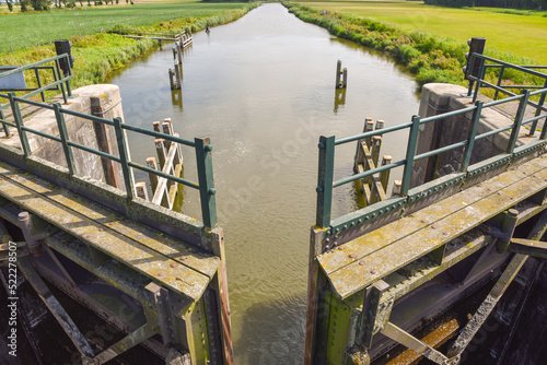 Westerland, Netherlands. August 2022. Opened sluice gates and draining water.