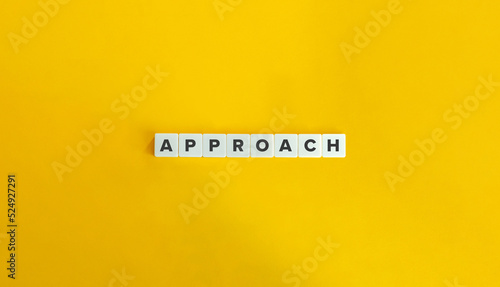 Approach Word and Banner. Block Letter Tiles on Yellow Background. Minimal Aesthetics.