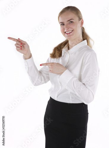piękna młoda kobieta wskazująca kierunek