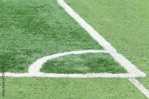Linea de tiro de esquina en cancha de futbol soccer con pasto artificial
