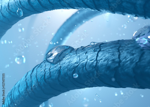 human hair under a microscope with liquid drops, structure and structure of hair, 3d rendering
