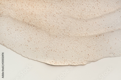 Beauty gel texture with particles. Beige background with brush strokes and particles