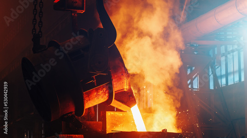 Process of Casting in Foundry. Steel Mill metallurgical Factory. Molten metal. Heavy Industry.