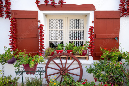 Espelette village au Pays Basque avec ses piments rouges et ses maisons traditionnelles