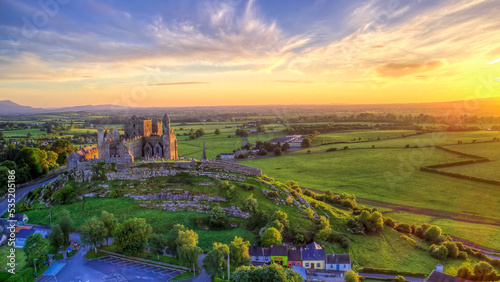 The Rock of Cashel, one of Ireland’s top attractions, group of Medieval buildings set on limestone.