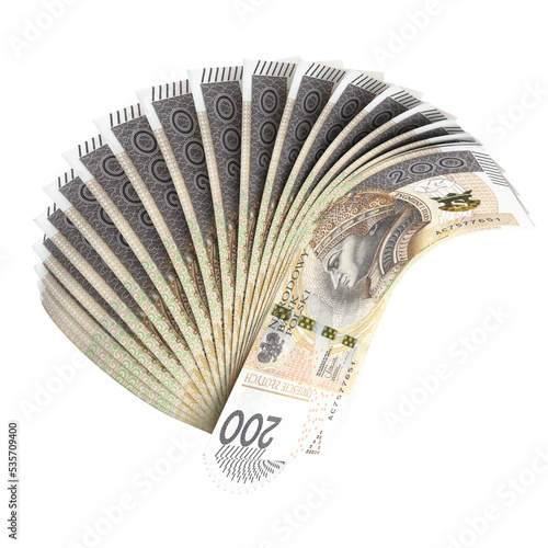 Wachlarz banknotów 200 Złotych Polskich