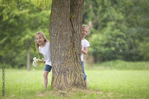 little girls playing hide and seek