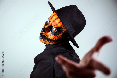 portrait of a person with a mask. Mask face. Halloween. Horror. Male. Photo. Fall.