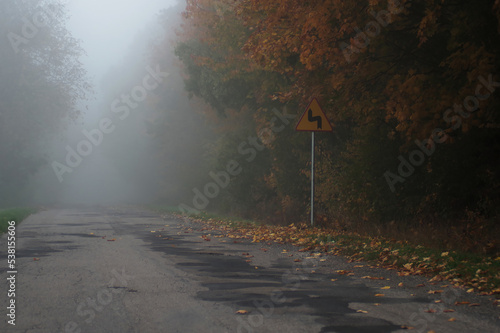Zamglone drogi o poranku jesienią.