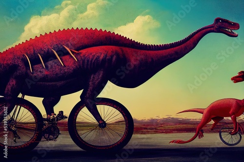 Symbolic image of a dinosaur that rides a bicycle. High quality Illustration