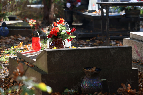 Cmentarz jesienią z alejką grobów bliskich. Wszystkich świętych