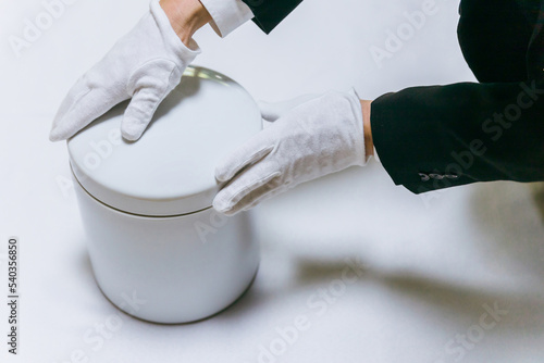 火葬場にある骨壷と箸