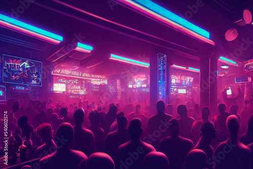 Crowded futuristic cyberpunk street and marketplace, Concept Art, Digital Illustration, Generative AI