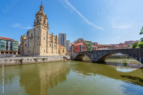 Panoramic view of Bilbao estuary with San Anton church and San Anton bridge