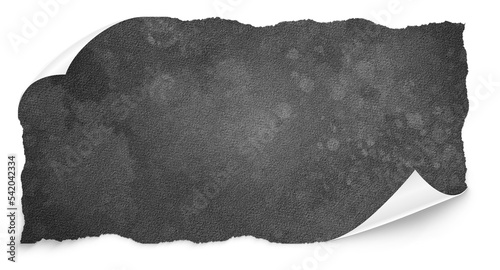 Podarta pogięta czarna karteczka z zagiętym rogiem.