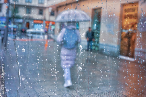 people with an umbrella in rainy days in Bilbao city, Basque country, Spain