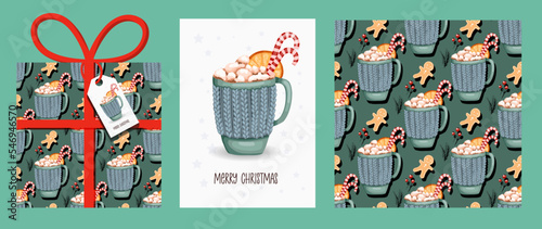 CHRISTMAS SET, Christmas and New Year template set for greeting scrapbooking, congratulations, invitations, tags, cards. Vector illustration.creative artistic templates with winter mugs