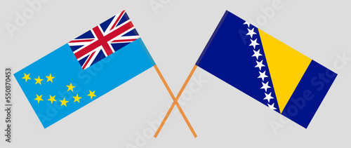 Crossed flags of Tuvalu and Bosnia and Herzegovina. Official colors. Correct proportion