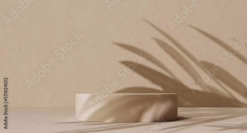 Minimal product display neutral beige color shadows and podium background. 3d rendering abstract aesthetic scene stage showcase.