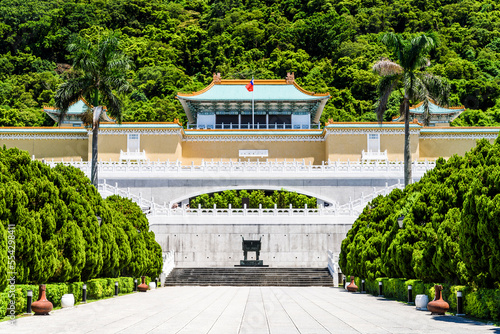 Building view of the Taiwan National Palace Museum in Taipei, Taiwan. This is a Magnificent Chinese-style palace building.