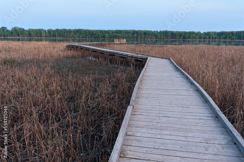 marsh and boardwalk along minnesota river in minnesota valley national wildlife refuge of bloomington minnesota