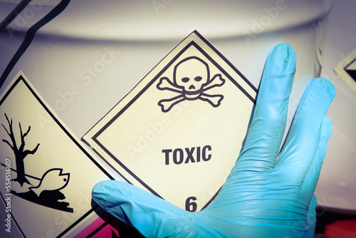 The toxic symbol on chemical products, dangerous chemicals in industry