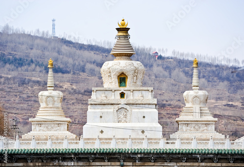 A white Buddhist stupa or pagoda in a Tibetan monastery, Tibet.