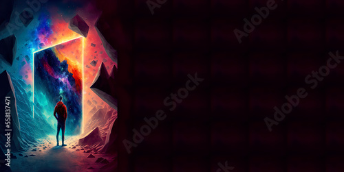 Another dimension, looking to what we do not know or understand, beauty of the cosmos, spirituality, metaphysic, meditation, universe, copy space, sci-fi, illustration, colorful, generative ai