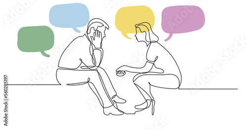 young man and woman talking having conversation with speech bubbles - PNG image with transparent background