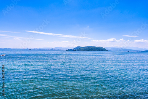 志賀島「観光名所・行楽地・海水浴で有名な島」 Shikanoshima "Island famous for tourist attractions, recreational areas and beaches" 「夏空を背景に志賀島から観える風景」 日本(夏) Japan (summer) 九州・福岡県福岡市(志賀島) 2022年(夏)撮影 Taken in 2022 (Summer)