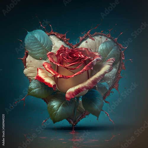 Gotischer Valentinstag, Herzen mit Rose schön arrangiert und platziert