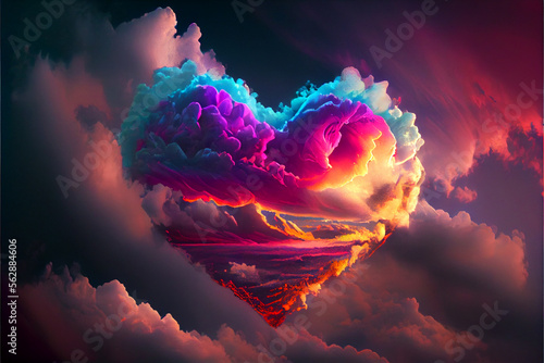Beautiful and colorful cloud with heart shape for valentine's day background. Generative AI illustration