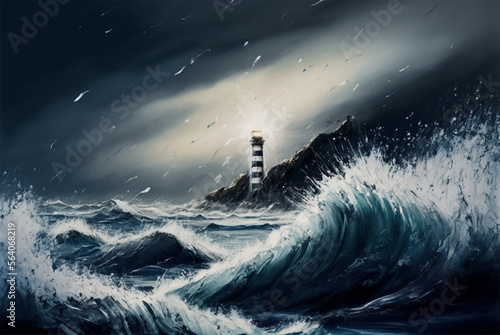 Leuchtturm im Sturm - Kunst Gemälde von Generative AI