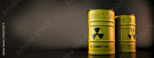 Yellow barrels for radiation waste. Concept banner warehouse for spent nuclear fuel of power plant. Generation AI