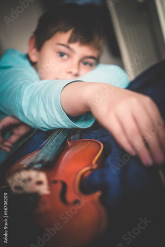 Portret chlopca ze skrzypcami.