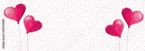 Walentynkowy banner, nagłówek, tapeta, plakat, kartka lub tło. Nastrojowy, w odcieniach różu, artystyczna ilustracja z balonikami w kształcie serc z miejscem na tekst