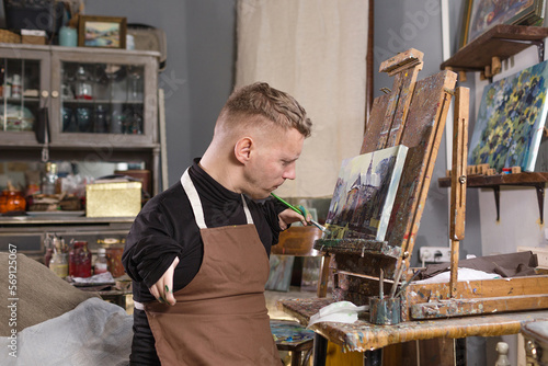 a man with disabilities draws pictures and is engaged in art