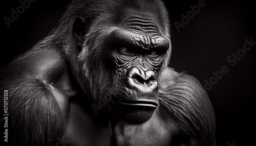 Schwarz weiß Portrait von einem Gorilla. Perfektes Wandbild - Generative Ai