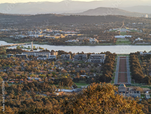 A view of Anzac Parade towards the centre of Canberra, ACT, Australia, and beyond to Parliament House.