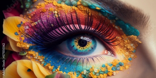 Edel Visagistik am Auge in tollen Farben mit Iris Nahaufnahme, ai generativ