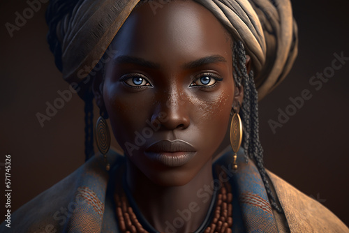 Portrait of woman from Dogon tribe, West Africa. Ai generated art