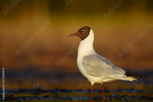 Black-headed gull (Chroicocephalus ridibundus) in the wetlands in spring.