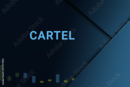 cartel background. Illustration with cartel logo. Financial illustration. cartel text. Economic term. Neon letters on dark-blue background. Financial chart below.ART blur