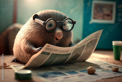 Illustration of funny blind mole with glasses reading a newspaper AI generated content