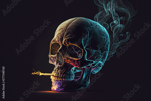 caveira de homem fumando, problemas com doenças relacionadas ao cigarro e vícios