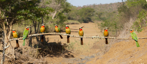 White-fronted Bee-eater (Merops bullockoides) with an insect as a prey sitting on a branch in Zimanga Game Reserve near Mkuze in South Africa
