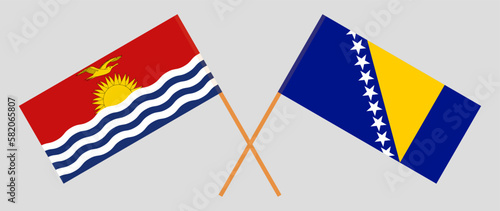 Crossed flags of Kiribati and Bosnia and Herzegovina. Official colors. Correct proportion