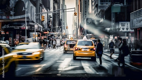Bustling busy city street dynamic movement. Generative AI