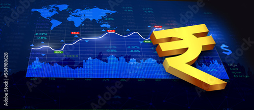 Indian business success concept, indian rupee 3d rendering with growth graph illustration background